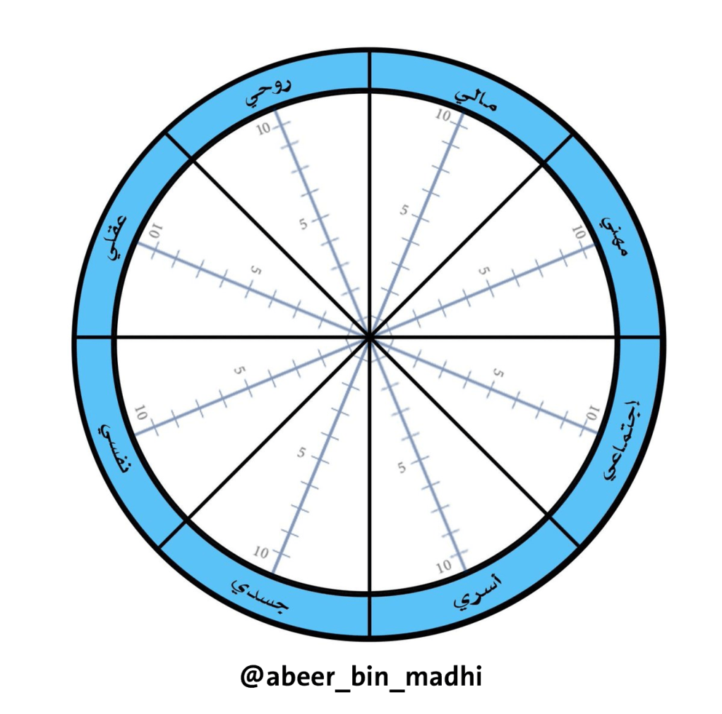 عندما نتأمل عجلة الحياة الثمانية نجد أن هنالك ثمانية أبعاد :